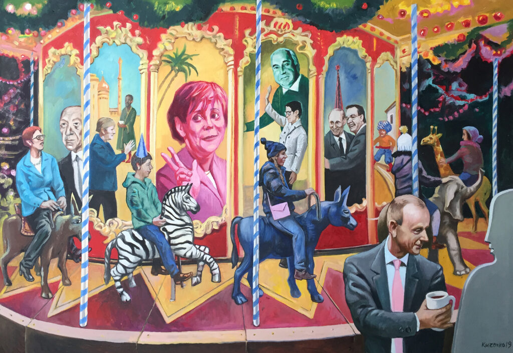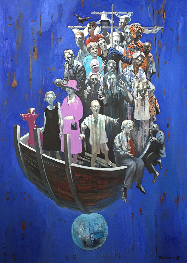 Kuzenko greift durchaus auch kritisch zeitgenössische Thematiken und Fragestellungen auf. So geißelt er beispielsweise in seinem Gemälde „Vatermord“ (2017) das Phänomen, dass in Afrika und Lateinamerika selbst Kinder und Jugendliche zum Waffendienst herangezogen werden und ideologisiert selbst Väter erschießen. Im Gemälde „Arche 2“ (2018) thematisiert er die Flüchtlingsproblematik, die unter der Bundeskanzlerin Angela Merkel mit dem Satz „Wir schaffen das!“ zur umstrittenen Hilfsaktion wurde. Im Gemälde „Politisches Karussell“ (2019) ironisiert er die Auftritte von Politikern als Schaustellbetrieb. Im Gemälde „Greta“ (2020) bezieht er sich auf die kompromisslose Forderung der schwedischen Schülerin Greta Thunberg nach notwendigem Klimaschutz gegenüber der Politik.